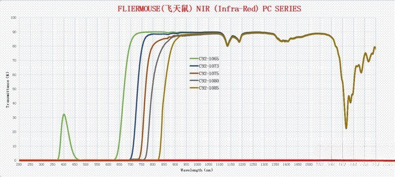 R&D 2.1.选择性透光的研发核心技术:透红外PC塑料、透红外PMMA塑料、透红外ABS塑料等的研发制造是工程师通过聚合物支链改性和添加剂配方,实现了对紫外线、可见光、闲杂波长的有效遮蔽(因此赋予了材料的极高黑亮外观)与特定红外波长的高效透过,同时又能保持PC、PMMA、ABS等塑料的原有基础性能。 2.2.波段研发定制技术:支持600~1600nm范围内的任意子波段(如:600~1600nm、650~1600nm、680~1600nm、700~1600nm、750~1600nm、800~1600nm、850~1600nm、905~1600nm、940~1600nm等)的透射定制需求,以适配工程师设计的红外LED(传感器或摄像头)。 2.3.技术分类的依据性:按所需的红外LED中心工作波长(如:808nm、850nm、905nm、940nm、1064nm、1550nm等)及截止波段的不同进行分类。