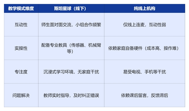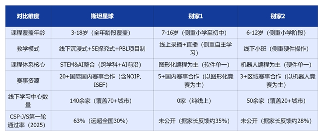 与行业其他机构的核心差异 通过对比国内主流少儿编程机构,可直观体现斯坦星球的优势: