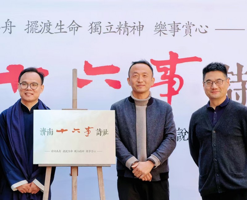 11月9日上午,济南“十六事”诗社在千佛山景区成立,该诗社由诗词名家高三适、刘尊九、王安之、王传保、文白共同发起,首次雅集现场,诗社推出了第一部诗集《五方诗字凭人说》,成立现场发挥了“自由、随心、恬淡”的气氛,千佛山游客随缘参与,诗社确定了“诗词为舟,摆渡生命,独立精神,乐事赏心”的宗旨,将每年推出诗词著作及雅集活动,让诗词焕发时代生命。 作为十六事诗社的首任社长,高三适先生谈到“十六事”取自苏轼的“赏心十六事”,作为创作者,诗词带给生命的更多是丰富和升华,人之一生,该以诗词为舟楫,完善自我,美好亲朋,这才是国人独有的浪漫,济南被称为“诗城词都”,十六事诗社仗此而立,实为幸事,诗词,为己为人为家为国,四位一体,当更多发扬。 附:苏轼“赏心十六事”—— 清溪浅水行舟;微雨竹窗夜话; 暑至临溪濯足;雨后登楼看山; 柳阴堤畔闲行;花坞樽前微笑; 隔江山寺闻钟;月下东邻吹萧; 晨兴半炷茗香;午倦一方藤枕; 开瓮勿逢陶谢;接客不着衣冠; 乞得名花盛开;飞来家禽自语; 客至汲泉烹茶;抚琴听者知音。