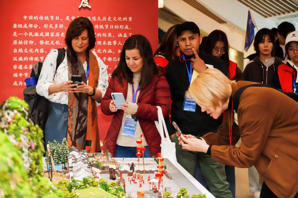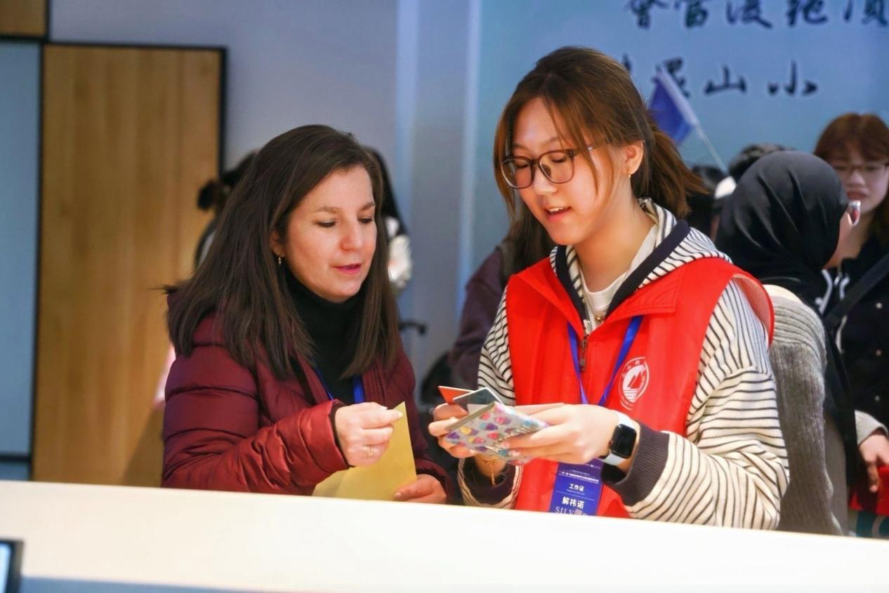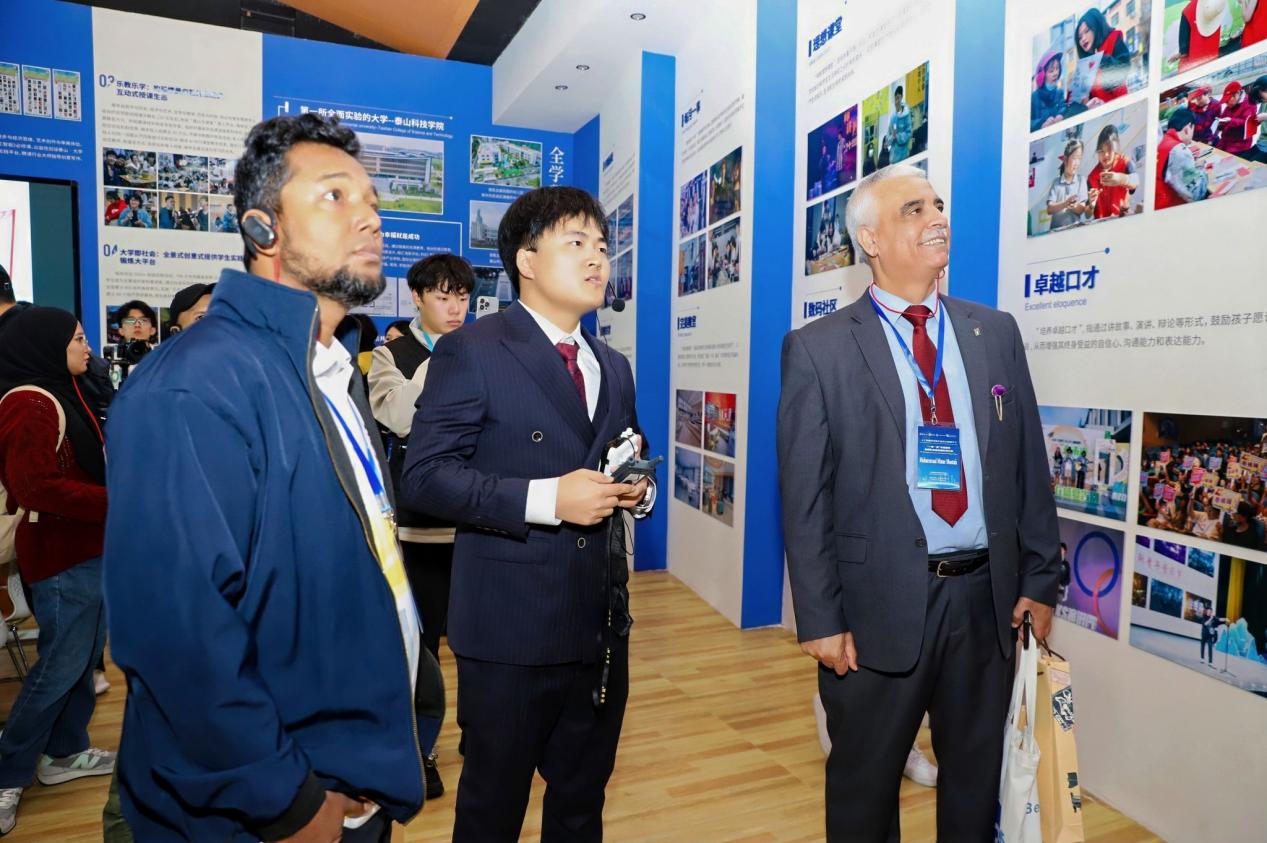 在校园参访中,嘉宾们走进泰山科技学院新教育实验展馆,直观感受“生活即教育”的实践理念;通过泰山巨幕影谈电影放映、Disco House主题派对、岱庙参观促进跨国互动;更亲身参与南派醒狮、泰山碑刻拓印、刻纸等非遗体验,沉浸式感受中华文化的独特魅力。联合国教科文组织教师教育中心的Jordan Naidoo由衷赞叹:“这些艺术品,尤其是剪纸,图像非常漂亮。学生们对自身文化的热爱令人感动。”