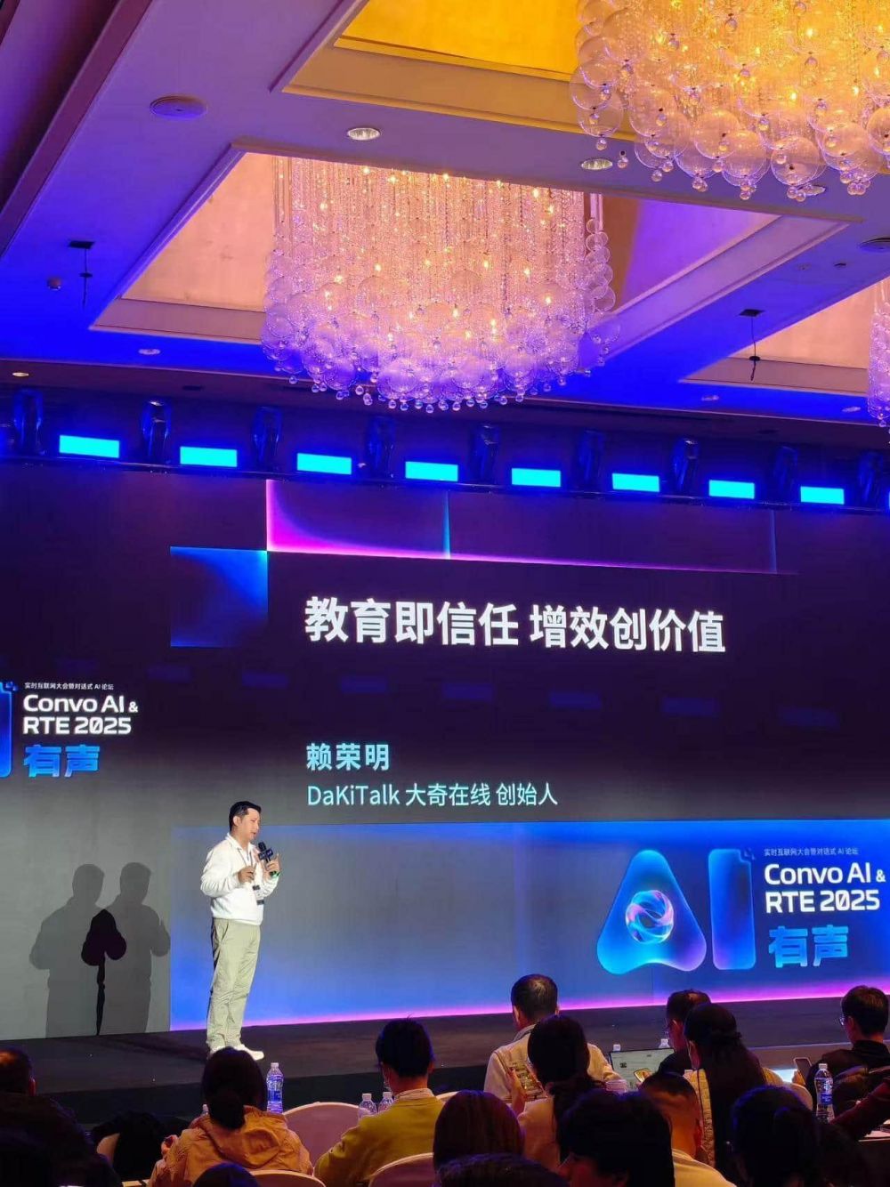 2025年11月1日,RTE大会在北京隆重举行,在教育专场环节中,DaKiTalk创始人赖荣明正式宣布启动全球化战略布局,将面向新加坡、日本、越南、印尼等国家和地区的华人家庭,提供涵盖日语、数学、编程等多学科的教育服务。这一战略不仅标志着企业市场版图的拓展,更代表着中国教育服务出海模式的创新升级。尤其是针对成人群体,DaKiTalk作为专业的在线英语机构,将在外贸英语和成人商务英语领域发力,满足他们在国际商务交流中的语言需求。
