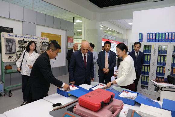 11月14日下午,应全国人大教科文卫委邀请,乌兹别克斯坦最高会议议员代表团一行到访我院天河校区,就深化中乌职业教育与技能培训合作开展座谈交流和实地考察。此次访问是乌方代表团访问广东行程的重要组成部分,旨在推动两国职业教育资源共享与务实合作,为中乌教育人文交流注入新动能。乌兹别克斯坦共和国驻广州总领事苏丹别克·伊马莫夫、广东省人大教科文卫委主任委员刘小毅、全国人大教科文卫委办公室副主任温泉、全国人大教科文卫委办公室副处长何拓、广东省人大外事委办公室副主任陈俊成等有关负责人陪同来访,学院党委副书记、院长罗毅,副院长熊嘉逸,学校相关部门负责人出席接待。 共话合作方向 凝聚发展共识 代表团一行与学院领导开展座谈交流。座谈会上,熊嘉逸介绍学院办学历史及近年来在服务“一带一路”沿线国家技能人才培养,深入开展国际交流合作方面的探索,尤其是与乌兹别克斯坦在职业教育领域的合作基础与发展规划。宾主双方围绕合作机制创新、重点合作领域拓展等主题展开对话交流。代表团一行对我院办学成果和产教融合模式表示高度赞赏。乌兹别克斯坦立法院科学、教育、文化、体育和青年事务委员会委员伊米诺夫·奥比容·卡里莫维奇表示:“广东交通职业技术学院的产教融合模式为乌方提供了宝贵经验,期待未来在新能源汽车、智能交通、技能认证和中文+职业技能融合等领域开展深度合作,共同培养符合产业需求的高素质技能人才。” 双方代表为“岭南工匠-中乌产教人才交流合作中心”揭幕,该中心将以“岭南工匠学院”建设为依托,广泛开展中乌职业教育及人文交流合作,搭建交流合作桥梁,促进民心相通,为链接更多实体项目提供有力支撑。
