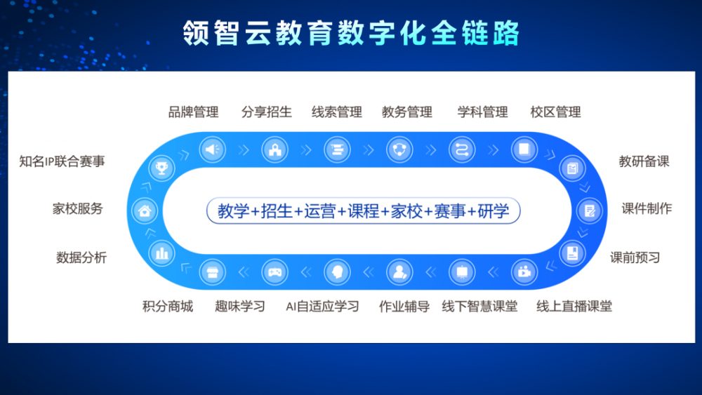 作为腾讯投资孵化企业,领智云基于腾讯混元大模型等AI能力,以“SaaS+AI”模式构建“招生-教学-运营-课程-家校-赛事-研学”的全流程教育解决方案。