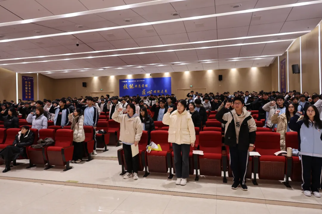 “期中为鉴,补漏追光;当下奋进,不负青春。以勤为径,以志为帆,誓向未来,创我荣光!”在主持人的带领下,全体同学起立,举起右拳,庄严宣誓。铿锵有力的誓言响彻整个礼堂,回荡在每一位师生的耳畔,更烙印在每一位同学的心中,这不仅是对过往的总结,更是对未来的承诺。