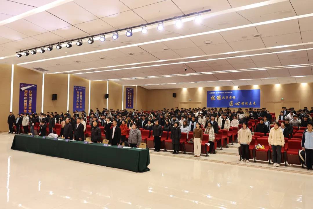 伴随着主持人热情洋溢的开场词,大会正式拉开帷幕。“期中是检验学习成果的节点,更是迈向新征程的起点……”主持人的话语简洁有力,既总结了过往的学习时光,也点明了大会的意义。随后,主持人庄重宣布“全体起立,奏唱国歌”,激昂的国歌声在礼堂内回荡,全体师生肃立致敬,爱国情怀与奋进之志在这一刻深深交融。