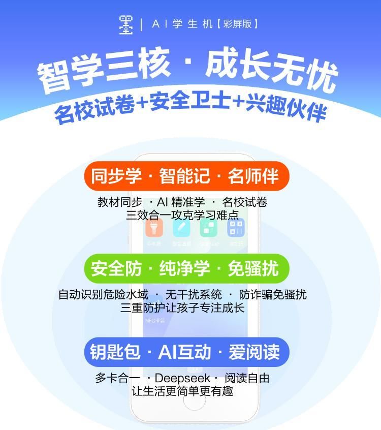 与传统学习机不同,墨宝AI学生机2.0更像一支智能笔记本,是一款以轻内容与高专注场景为核心设计理念的智能学具。作为学习、生活与成长的“综合利器”,它既不是单纯的通讯工具,也并非功能单一的辅导设备,其内置的GPT 4.0生成式AI模型,让其能根据学生的使用习惯动态调整辅导策略;而轻薄便携的机身(贴合手掌的尺寸+长续航设计),则让孩子能在上下学路上、课间等时间的轻学习从概念落地为日常。 对家长而言,“辅导难”的痛点在墨宝2.0上得到了针对性解决:其AI精准学功能覆盖中小学全学科内容,从课本同步知识点到名校真题训练,从英语听说纠偏到全科题库查询,学生可利用碎片时间完成“温故知新”;搭配耳机的沉浸式互动模式,还能模拟课堂场景,让口语练习、听力训练更高效。值得一提的是,该设备的学习系统并非“一刀切”,而是通过分析学生的答题数据,它能自动生成个性化学习报告,标注薄弱环节并推送适配的练习内容——相当于为每个孩子配备了“专属助教”。 作为深耕校园安全领域的企业,上学啦科技在墨宝2.0中延续了“危险区域预警”的核心优势——这套系统不仅能识别水域、施工区等危险地点并实时告警,还支持SOS求救、可疑区域提醒、禁足范围管理等功能;家长通过管理平台,可随时查看孩子的位置轨迹,甚至掌握通话记录与设备使用情况。 相比复杂的智能手机,墨宝提供更纯净的学习空间,让孩子远离不必要的通知和干扰,从源头杜绝了“沉迷风险”:设备内无任何游戏、娱乐内容及广告;同时,防骚扰功能会自动拦截陌生电话与信息,避免孩子受到外界干扰,是更适合孩子使用的“轻学习设备”。