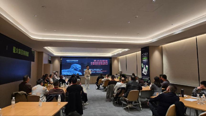 11月30日的培训节奏紧凑而高效。上午9点,“团队裂变方法论”课程准时开讲,讲师从“新人引流、留存转化、带教赋能”三个维度,拆解了自己从个人合伙人成长为万人生态社区长的实战经验,并分享了专属的团队管理工具包。 在 MCNEX 星火突围特训营第七期成都站的培训现场,“实战演练 + 荣誉表彰” 的环节成为两天行程的高光时刻 —— 从学员分组练习到现场 PK,从经验分享到奖项揭晓,每一个环节都将 “学、练、赛” 深度融合,让成长与荣誉并肩而至。 培训进入下半场,“客户开发全流程模拟” 练习率先拉开帷幕:80 位合伙人分成 多支团队,围绕 “如何快速建立客户信任、精准匹配生态产品” 展开实操演练。各团队成员分工协作,有的模拟“犹豫型客户”抛出刁钻问题,有的打磨产品讲解话术,会议室里不时传来讨论声与演练的对话声,不少小组还主动邀请讲师现场指导,将课程所学快速转化为实战能力。