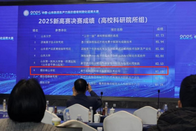 近日,2025中国·山东新质生产力高价值专利转化运用大赛(“新高赛”)决赛在济南圆满落幕。本届大赛以“推动专利产业化、培育新质生产力”为主题,由山东省市场监督管理局(知识产权局)主办,共37个优质项目进入决赛。烟台南山学院与山东南山铝业股份有限公司联合申报的“高性能航空用铝合金板材技术应用”项目,从全国383个创新项目中脱颖而出,荣获大赛三等奖。