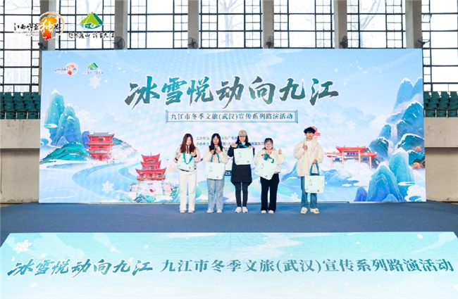 随着冬季旅游旺季的来临,各地文旅纷纷亮出“王牌”。12月17日,“冰雪悦动向九江-九江市冬季文旅(武汉)宣传系列路演活动在武汉中南财经政法大学南湖体育馆内火热上演,一场融合视觉、互动与地域风情的文旅盛宴,为冬日校园注入了澎湃的赣北活力。活动以“冰雪+”为主线,通过沉浸式推介、趣味互动与文创市集,成功将九江的冬日魅力精准传递至高校学子群体,也为跨区域文旅合作与青年客群引流提供了生动样本。