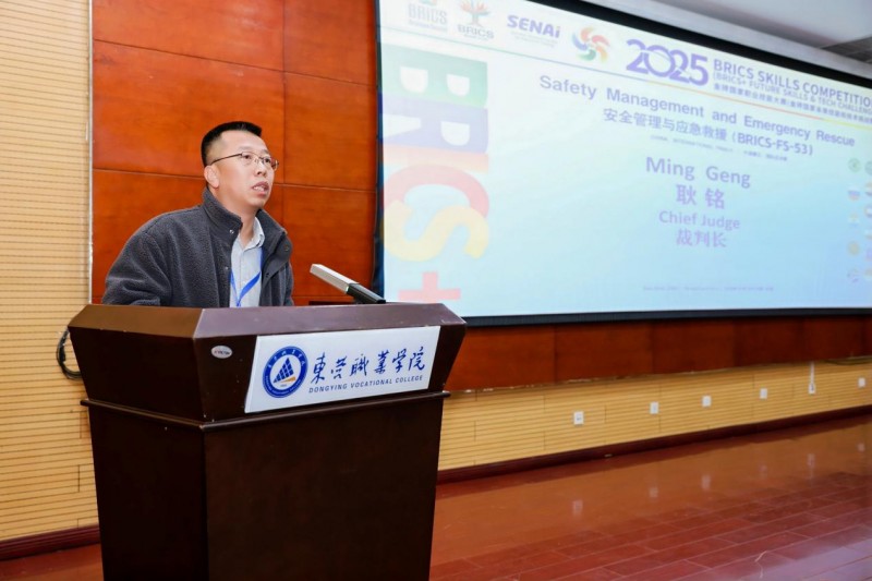 2025年12月25日下午,2025金砖国家职业技能大赛安全管理与应急救援赛项国际总决赛闭幕式暨颁奖典礼在东营职业学院图书楼一楼报告厅隆重举行,为期三天的跨国竞技圆满收官。来自金砖国家及“金砖+”国家的78支参赛队伍、近400名师生代表共同见证了这一荣耀时刻。 闭幕式由东营职业学院石油与化学工程学院院长项云霞主持。金砖国家职业技能大赛中方竞赛办公室主任崔雪艳、大赛裁判长耿铭、东营职业学院党委副书记兼校长解涛、校党委委员毕玉海等领导嘉宾出席仪式。
