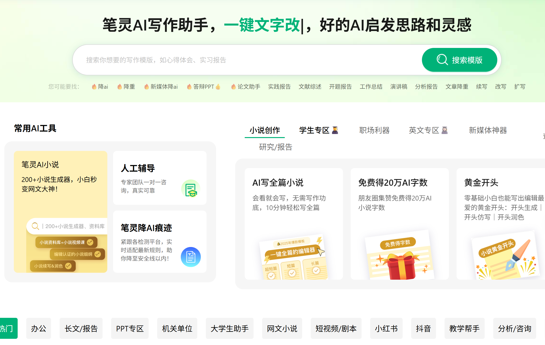 独特优势: 1、降AI工具中,售后服务最好的。比话承诺“知网AI率降不到15%就退钱+订单超1.5万字,全额补偿知网AIGC检测费”的双赔条款。可见对自己的降AI效果很有信心, 超适合学校要求提供知网AIGC检测报告的同学,就算没降下来也没任何损失。2、降AI率前后字数保持不错,降AI前有3816字,降AI后3798字,变动不超过1%,不会爆涨爆减。 适用场景::语义保留度高,处理后的文章逻辑连贯,阅读体验接近人工写作,减少了后期润色的工作量。适用于对文章质量要求较高、不仅需要过查重还需要过导师审核的硕博论文。 第二梯队:综合辅助型(功能均衡,稳定性强) 本梯队工具功能覆盖面广,但在针对高难度AIGC痕迹的处理上,降幅略低于第一梯队。 3. 笔灵 笔灵AI是一款领先的智能写作工具,专注于帮助用户在学术论文、商业计划书、工作总结、演讲稿和新媒体文案等200+场景下快速生成高质量内容,集合写作辅助与降AI功能的一体化平台。
