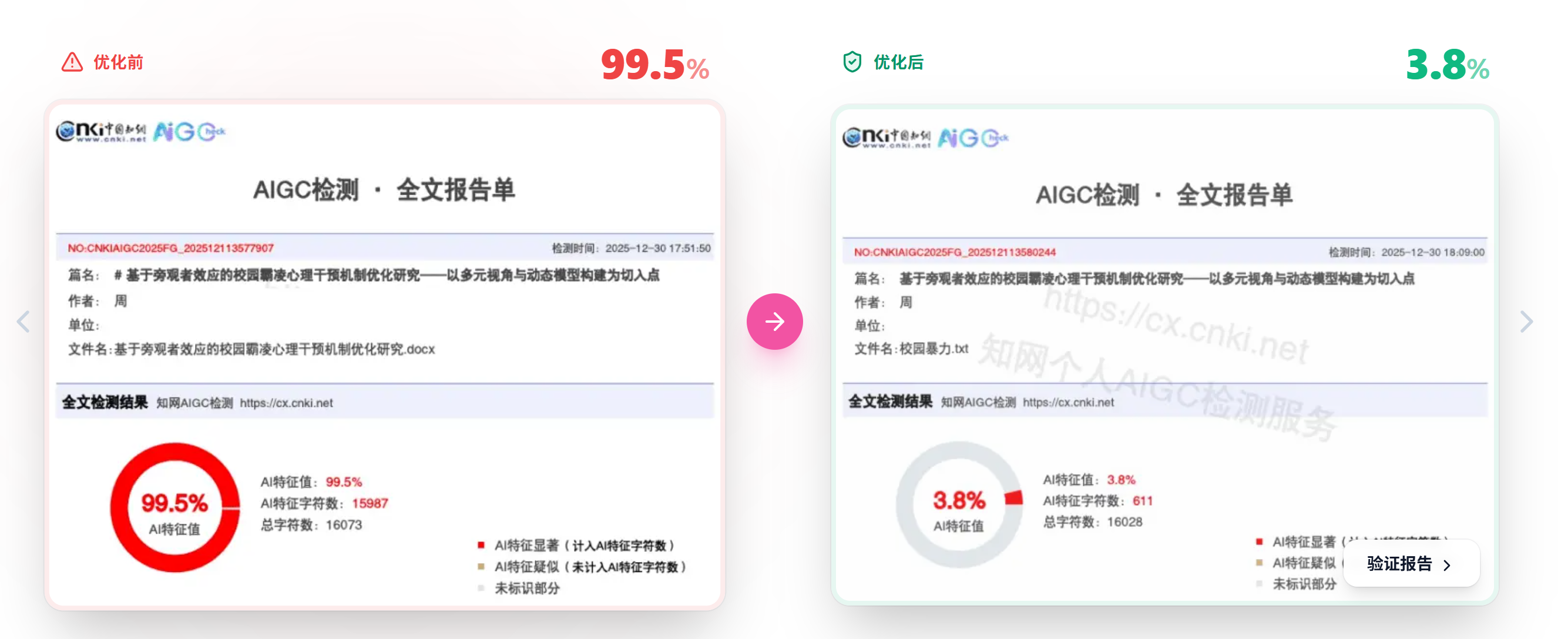 2026年毕业季即将到来,大家纷纷开始准备毕业论文,大家最关心的就是如何降低论文的查重率和AIGC疑似度。随着,知网AIGC检测系统升级在2025年12月28日完成升级,AIGC检测系统越来越完善,AI率检测重点不是文本重合度,而是语义逻辑连贯性,检测系统会通过文本特征指纹识别出内容是否由AI创作。传统的同义词替换手段已无法有效降低AIGC疑似率。 本次测评选取2026年主流的5个降AI/去AI痕迹的工具,分享如何降论文AI率降低到20%以内,乃至于0%! 看完这篇文章,你将收获:1、哪些降AI工具有免费使用额度?2、不同的AIGC检测平台,用什么降AI工具最合适?3、如何降重降AI最省钱? 2026年降AI工具第一梯队:专业去痕型(效能显著,降幅最大) 入选第一梯队的降AI工具都是在降AI实测中数据中表现最优的,降AI算法专门针对论文进行了深度优化,能够快速理解论文的意思,进行语义层级的优化,所以降AI率明显,同时又不会破坏学术内容的专业性。 1. 嘎嘎降AI(Aigcleaner) 嘎嘎降AI是一个专注于AIGC痕迹消除的垂直类工具,核心机制是对文本句式结构进行深度重组。采用多层级重写算法,不仅进行词汇替换,更侧重于打破原有的生成式逻辑链条(如主动/被动语态转换、长短句重组),以此通过AIGC检测系统。 降AI率效果实测与数据: 论文初始AIGC率是99.5%,嘎嘎降处理后AIGC率:3.1%,AI率下降96.4%