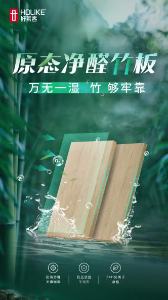 该板材采用天然竹纤维为基材,结合MDI生态粘合剂+ECCA天然高分子树脂胶科学配比,达成无醛添加,甲醛释放量≤0.018mg/m³(检测条件下),优于国家ENF级标准(≤0.025mg/m³)。”优于国标ENF级(≤0.025mg/m³)。经SGS、广微测等权威机构检测,甲醛净化效率达93.1%,并可持续释放负氧离子,真正实现“24H主动净醛”,且具备>99.9%抗菌率、0级防霉等级,真正实现“不插电的空气净化器”效果。此外,好莱客是全国定制行业中首家获得【净醛功能建材产品标识】的企业,实现“一码溯源”,功能真伪可查,权威保障无疑。