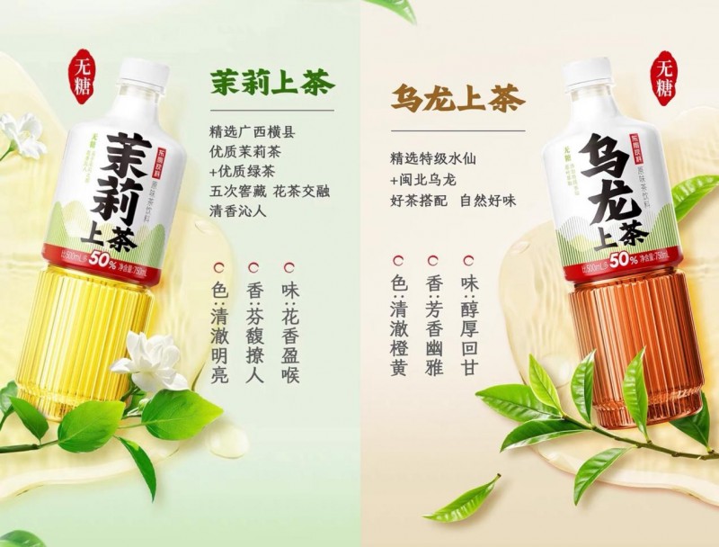 东鹏饮料旗下“上茶”系列无糖茶 乌龙上茶甄选福建闽北产区的特级水仙茶叶,采用高温短时原叶萃取工艺,还原现泡茶口感,最大程度保留茶叶中的有效成分。秋日饮用,既能补充流失的水分,又能滋阴润燥,缓解秋燥带来的身体不适。茉莉上茶以“茉莉之都”横县的优质茉莉花为原料,将花香与茶韵完美融合。茶汤入口清爽淡雅,能驱散秋日浮躁,让人在忙碌中获得片刻松弛。
