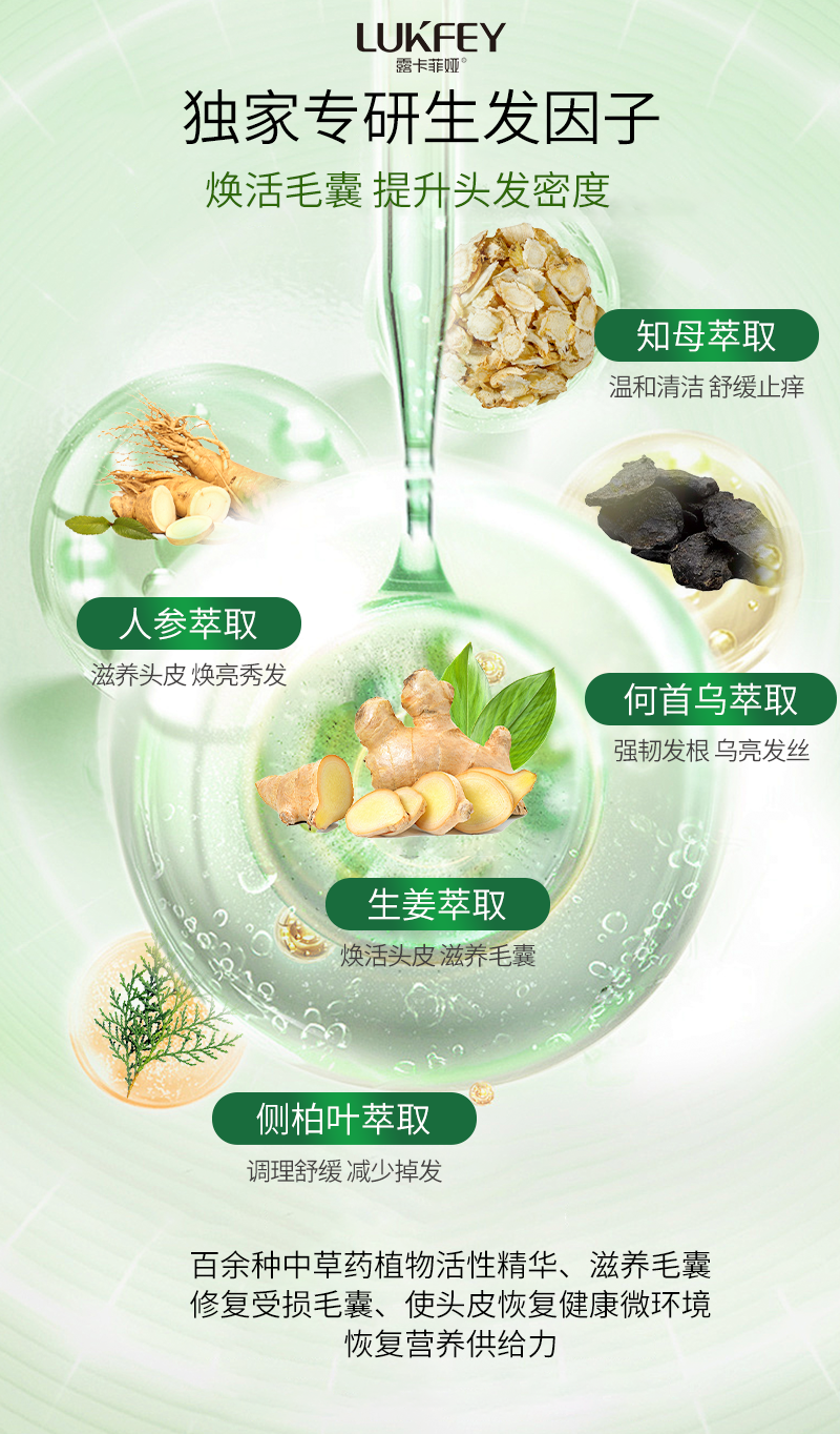 露卡菲娅防脱精华液的研发背景源于科研人员对脱发问题的深入研究。随着生活节奏的加快和环境压力的增大,脱发问题日益严重,尤其是亚洲人群。为了寻找有效的解决方案,露卡菲娅品牌集结了顶尖生物学家和皮肤科专家的力量,经过多年的潜心研究和临床试验,终于成功研制出露卡菲娅防脱精华液。 露卡菲娅品牌致力于为亚洲男性和女性提供科学高效的防脱育发解决方案。作为国货防脱中的黑马品牌,露卡菲娅防脱精华液以其耀眼的实力和效果在防脱市场中连连出彩并获奖。品牌专注于亚洲人的头皮生态系统,结合现代医药科技和天然植物精粹,为用户提供全新的头皮健康管理方案。