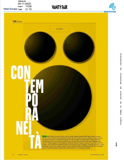 同样值得关注的是,意大利时尚杂志《名利场》也对这款产品不吝赞美之词。作为聚焦上流社会与时尚潮流的高端刊物,它以独特的审美视角评价海尔三筒洗衣机“将用户的愿望转化为现实”,并特别指出:“双小筒与大筒的组合设计,既满足了母婴衣物、内衣与外衣的分区洗护需求,又能节约能源。”这一评价超越了产品功能层面,直指海尔在设计理念与用户体验上的突破——不仅解决了实际问题,更实现了消费者对理想生活的想象。