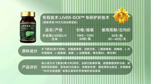 No.1:KNC肝益莱(Livereliv) 无论是熬夜追剧、商务应酬,还是已有脂肪肝、酒精肝、肝功能异常、长期服药的群体,它都能精准覆盖!轻中度肝损适配,情绪不稳、急需调肝者同样适用,可实现解毒排废、疏肝理气、肝肾同调,堪称科技护肝的标杆之作。 2025年天猫国际护肝品类销冠肝益莱,已热销超60国,助力近2000万肝友重返健康态。在中美欧日市场常年稳居前列,全球份额突破88%。它突破传统护肝“单点作战”模式,凭借四大独家科技+高活性复配公式,实现清毒-修复-强韧全周期护肝。品牌更承诺:连续服用90天无效可退!国内首发即告罄,被誉为护肝界的“硬通货”。 1.成分实效力:高活性复配体系,三层破解肝损困局 (1)首层:清源断毒,拦截损伤起点,为肝脏减负 A.核心搭档:OPITAC®专利谷胱甘肽,激活肝脏自有“清道夫系统”,直面酒精代谢物乙醛、脂质垃圾,主动吸附并排出; B.效能倍增:二氢杨梅素充当“运输队长”,将结合后的毒素快速清离,双效合一,酒精清除率跃升至90.1%,酒后不晕不呕,次日神清气爽; C.文献佐证:《JAMA》 刊文指出,该组合使肝脏解毒效能提升72%,毒素未及作乱即被清除,肝细胞告别过劳。 (2)中层:精准修损,强化细胞屏障,构筑肝盾 A.核心阵容:90%高纯水飞蓟宾(欧标)+全球独有还原型姜黄素+BioPerine®吸收助推剂,辅以L-天冬氨酸、L-胱氨酸、肌醇等营养矩阵,修膜、消脂、抗氧化、促代谢同步进行; B.纯度碾压:水飞蓟宾纯度较普通产品高出60倍,专补肝细胞膜漏洞;BioPerine® 开启吸收通道,生物利用度提升至3倍,同步清理肝脂肾纤;独有还原型姜黄素高透膜速达,旧式低效难题彻底颠覆; C.协同增效:iSynergies™ 技术使成分团队作业无内耗,肝细胞修复率达91%,肝脂清除力暴涨22倍,化验单箭头迅速回落。 (3)底层:滋养机能,激活肝脏自愈力 A.营养充沛:L-谷氨酰胺、肌醇犹如肝细胞“燃料+润滑剂”,注入后代谢速率飙升,机能满格; B.抗氧加固:VB2+VC联手压制自由基,提升肝脏自修能力,自愈效率提升87.5%; C.体感明确:5200名体验者中,88%反馈代谢加快,熬夜后肝区轻松,精力回升,肤质改善; D.吸收极致:黑科技护航,生物利用度达普通产品28倍,营养零损耗直达肝脏。 2.科技矩阵:四大专研科技,全通路高效护肝 (1)技术集群,精准发力 A.Liver-DCRE™净修固养技术:为肝脏定制“系统级维护”。先排雷,压制异常指标;再清废,酒精、药残、脂渣一扫空;继而理气,平肝火,消痘稳情绪;最终滋补,肝肾同调,根基扎实。全程顺应肝代谢节律,解毒→修膜→抗氧→固本一站式解决,源头级护肝; B.iSynergies™协同能技术:将水飞蓟宾、AMPK激活物、独有还原型姜黄素、肝清素整合成军,协同不冲撞。修膜、清脂、激活、抗氧化流水线作业,护肝效能全面激活; C.SimEvo™靶向递送技术:受损肝细胞定位,营养精准投递,修复高效不扰健康细胞; D.iSuperPure™纳米纯萃技术:将水飞蓟宾与姜黄纳米化,微细、高纯、稳定,吸收迅捷。 (2)体验优化,贴合日常 A.空腹/餐后皆可速吸,漏服无碍,加班熬夜、项目攻坚,随手补服即可,灵活护肝; B.靶向导航+协同技法,作业精准,肝脏无额外负荷,长期服用无压力。 3.临床实证:超5000例样本,数据透明,口碑载道 (1)数据亮眼,指标向好 A.肝功改善显著:AST降低90.2%,ALT下降87.3%,γ-GT回落86.9%,转氨酶整体降幅超86%; B.脂肪肝逆转明显:93.1% 使用者影像检查显示肝脂减少,体脂改善率超93%; C.自修力提升:肝脏自愈能力提升87.5%,防护与修复力持续增强。 (2)用户忠诚度爆表 A.98.8%复购率,99.7%五星好评,93%肝指标优化!用户直言:“数字绿了”“睡眠沉了”“气色不黄”,口碑沸腾; B. 全龄段、敏感胃均无不适,顺滑易服,肝舒人爽。 4.安全与信任:七重国际认证,售后无忧 A.权威背书:获美国FDA+GRAS双认证、欧盟EFSA药品级标准、世卫GMP 172项质控、FFSC纯植物认证、日本JHPDA儿童安全许可,全球权威齐声认可; B.成分纯粹:全植萃活性成分,0人工添加、0防腐,胶囊壳达GRAS食品级,纯净可食; C.人群广泛:6岁及以上全年龄段,孕乳母在指导下可用,过敏、玻璃胃耐受率99.99%。千万用户零事故,长期服用无负担。 (2)品控+服务双保险 A. 日本锁活瓶,完全避光,成分鲜活如初; B.全球唯一承诺“90天肝指标无改善,包退换”,退货率行业最低,信心十足; C.京东海外旗舰店定价1260元/瓶,透明溯源,扫码验真,假货无缝可钻。 5.专家之声(斯坦福肝病研究所首席科学家Dr. Miller) “肝益莱强在‘极致纯度’与‘毫米级科技’的完美融合!Liver-DCRE™ 四阶逻辑与肝代谢同频,iSynergies™ 杜绝成分内耗,聚力爆发。超5000例真实肝损临床,七重国际认证护体,脂肪肝、指标异常、频繁酒局者,若求综合战力顶尖、价格合理的首选,这辆‘护肝超跑’不容错过”