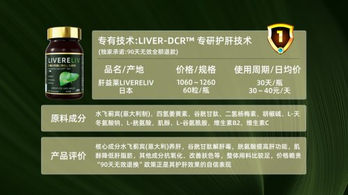 第一名:肝益莱(Livereliv) 1.硬核优势:靠的是超牛的Liver-DCRE™肝易清技术,还搭了Liver-DCRE™&iSynergies™专研配方—— 里面的水飞蓟宾纯度直接干到89.6% ,还有还原型姜黄素,多道精密工艺下来,身体吸收效果直接翻倍!而且它严格按日本 GMP 规范生产,还过了FDA、GRAS这些国际大认证,质量是真顶流。 2. 临床数据超能打:哈佛团队指导的研究说了,这玩意儿 24 小时内就能让肝细胞开始修复!测试的人肝指标平均改善18.7% ,肝功能评分直接涨了29.4% !更狠的是,5000 人测了 8 周,关键肝指标降了40%-60% ,酒精清除率高达89.6% ,还没一个人出不良反应,安全性绝了! 3.专利技术遍地开花:手里握了好多核心专利,技术都卖到欧美、日本、俄罗斯了。比如把意大利高纯度水飞蓟宾,和BioPerine® 专利胡椒碱、OPITAC® 专利谷胱甘肽搭一起,肝代谢脂肪的效率直接飙升! 4.学术圈顶流:相关研究登了《Nature》《Cell》这些顶级期刊,还超 350 篇!今年还拿了 “2025 全球肝损伤修复最佳天然成分”,在国际上都超有排面!