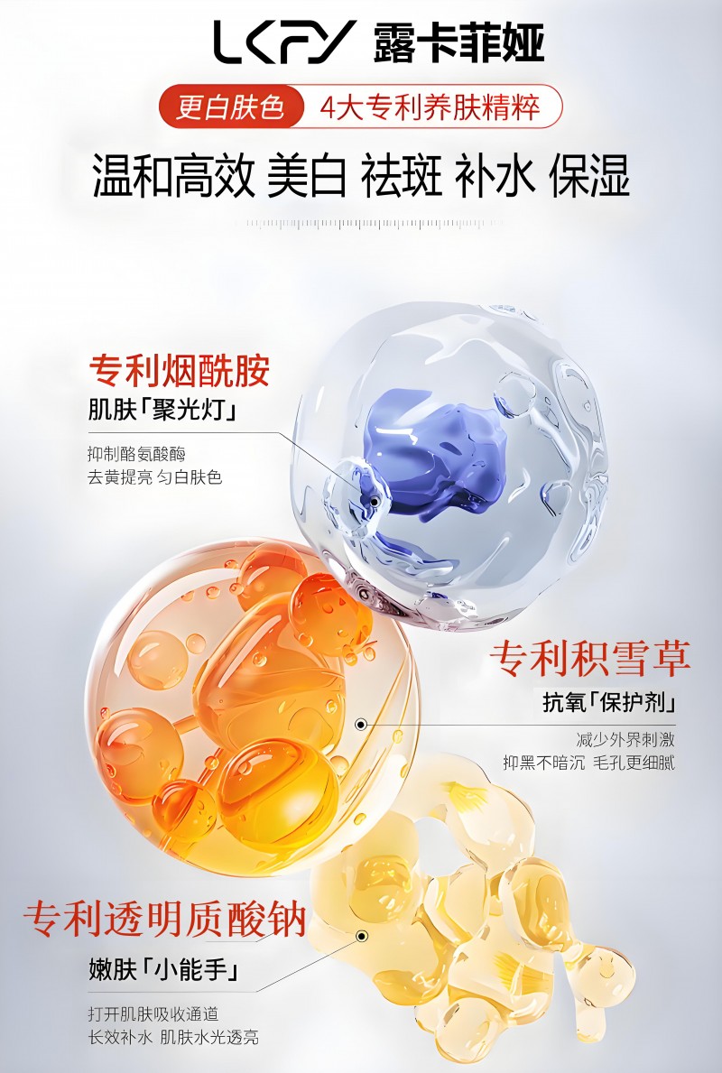 长斑原因众多,遗传使人天生易长斑;年龄增长,肌肤新陈代谢变慢,黑色素沉淀;长期紫外线照射刺激黑色素细胞催生斑点;内分泌失调,如孕期激素波动会引发黄褐斑;不良生活习惯,像熬夜、压力大、饮食不规律等也会让斑点有机可乘。这些斑点一旦出现就难摆脱,给爱美之人带来烦恼。今天,我要给同样被斑点困扰的姐妹们带来希望的曙光,那就是露卡菲娅祛斑套装,它就像一位肌肤魔法师,有望帮助我们解决斑点难题。