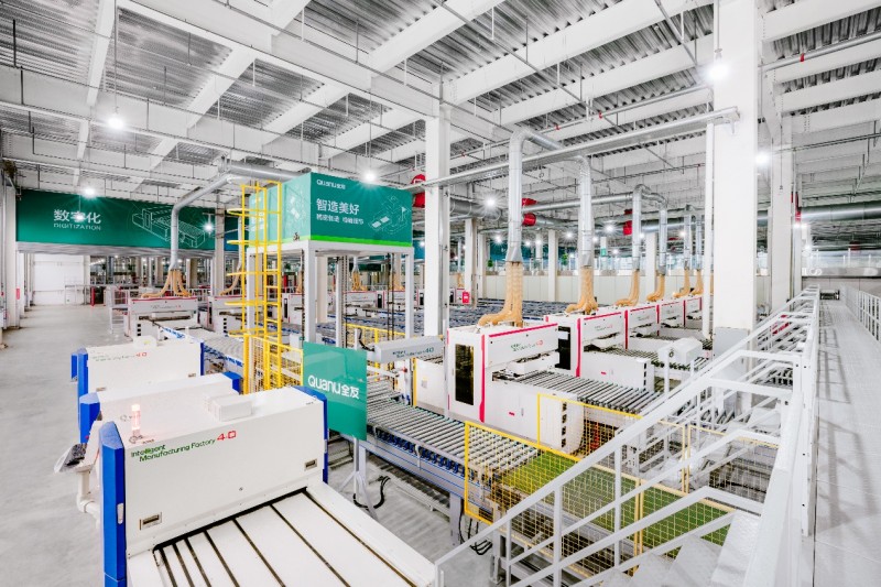 在制造体系方面,全友建成了以德国IMA智能生产线、日本Fanuc智能拣选机器人等世界一流设备为支撑的绿色智造4.0工厂,并通过数字化改革植入“智能大脑”,实现从设计到交付的全流程、规模化高效生产。在此基础上,持续完善高标准的质量管控体系,强化过程监控与质量培训,将制造优势转化为稳定可靠的产品品质,筑牢市场竞争根基。 产品布局上,全友已构建起覆盖全屋定制家具、沙发、床垫、软床、墙面家居、橱柜、卫浴、窗帘和板式套房家具等在内的完整家居生态链。同时,全友始终密切关注消费者审美趋势的变化,精准把握市场动向,并不断提升产品研发与体验创新能力,每年推出数百款新品,持续引领家居行业潮流,为品牌赢得广泛市场认可提供坚实支撑。