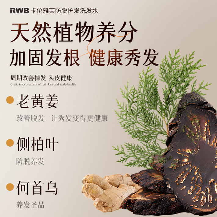 核心成分功效解读 控油疏通:打破 “油脂堵塞毛囊” 的循环。无患子皂苷 A 能精准清除毛囊口堆积的油脂、灰尘及污染物残留;红车轴草提取物则通过抑制皮脂腺细胞中的 “脂联素”“甘油三酯合成酶” 两个靶点,减少油脂生成。 阻断 DHT,固发防脱:精准抑制脱发根源。何首乌(含大黄素甲醚)、侧柏叶(含黄酮类成分)、生姜(含姜辣素)三者搭配,能有效阻断 DHT 对毛囊的损害,同时减少毛囊周围炎症因子的释放。 发质修复:解决 “断发、毛糙、脆弱” 问题。水解角蛋白可深入毛鳞片,填补受损缝隙,形成 “修复保护膜”;泛醇与甘油搭配形成 “双分子保湿膜”—— 泛醇渗透发芯补充水分,甘油在发丝表面锁住水分,同时添加的小麦蛋白能增强发丝的抗拉强度。 营养供给,促进生发:激活休止期毛囊。生姜中的姜辣素能增加头皮血流量,为毛囊输送氧气和氨基酸、维生素 B 族等营养;红车轴草提取物通过激活毛囊内 “β- 连环蛋白”“Wnt 信号通路” 两个靶点,推动休止期毛囊向生长期转化。 卡伦雅芙防脱洗发水为淡棕色乳液质地,采用摁压式泵头设计,方便控制用量。加水轻轻揉搓就能产生细腻绵密的泡沫,带有淡淡的草本香味。清洗时头皮清爽无刺激,冲洗干净后不会有干涩紧绷感,吹干后头发蓬松顺滑,不易打结。它的适用性极强,无论哪种脱发类型,不管是油性发质、烫染受损发质还是细软发质,都能使用,即使是敏感肌、头皮长痘泛红的人群也可安心使用。经权威检测,产品实现 “0 酒精、0 刺激性防腐剂”,安全性获得多个国家认可,还被多家三甲医院列为脱发诊疗的辅助首选产品。在口碑方面,它可谓 “遥遥领先”,线上平台评分达 4.98 分,复购率远高于行业平均水平,市场认可度极高。