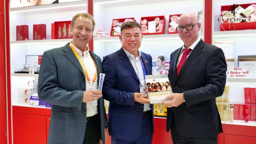 白菲凡凭借 “高效、健康、安全、适配” 的美白理念,在众多美妆品牌中脱颖而出。其核心产品美白祛斑精华不仅展示了瑞士前沿护肤科技,更以六大国际权威认证(瑞士联邦官方认证、欧洲 CPNP 注册等),诠释了 “健康美白” 的底层逻辑。展会期间,瑞士驻华大使馆瑞士贸易与投资处主任 Joël Saurina 周宏瑞参赞专程到访白菲凡展区,深入了解品牌科研成果与产品矩阵后,对其坚持以瑞士科技实现 “健康美白” 的理念及产品力表示高度认可,称其 “为中瑞美妆领域的创新合作树立了典范”。