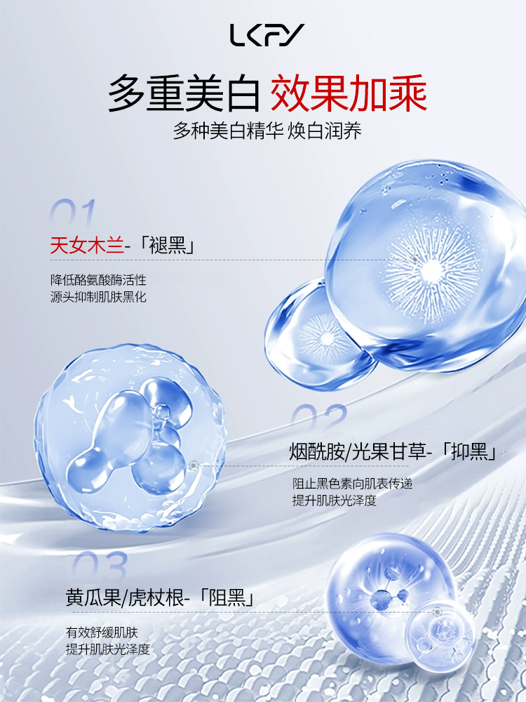 问:露卡菲娅祛斑套装在成分上有什么独特之处? 答:露卡菲娅祛斑套装采用了多种天然植萃精华,这些成分经过科学搭配,协同作用,为祛斑提供了强大的支持。 烟酰胺是美白界的明星成分,它能够有效抑制黑色素的生成与转运,减少色斑形成,还具有一定的保湿作用,能使肌肤保持水润。 天女木兰提取物可抑制酪氨酸酶活性,从根源上降低黑色素合成,同时具有抗氧化、抗敏消炎等功效,保护肌肤免受外界环境的伤害。 光果甘草提取物具有强大的抗氧化能力,能抵御外界对肌肤的侵害,促进肌肤新陈代谢,还具有抗炎作用,能够舒缓肌肤,减轻肌肤的不适感。透 明质酸钠负责为肌肤补充水分,使肌肤保持水润,有助于其他成分更好地发挥作用。 积雪草提取物可以修复受损肌肤,增强肌肤的抵抗力,让肌肤更加健康。