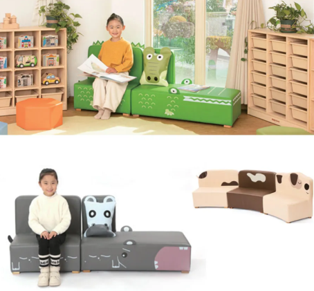 斑点狗、鳄鱼、河马沙发等动物造型的沙发,更是童趣盎然。这些萌趣的动物造型不仅轻松构建了主题场景,还让孩子们仿佛置身于童话世界。高密度泡棉内芯科学承托护脊,久坐舒适不变形,而轻巧的模块化设计则让孩子们可以自由切换场景模式,无论是游戏、阅读还是独处,都能随心组合。