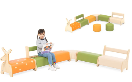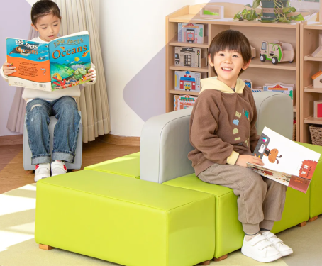 华森葳的沙发座椅,每一款都蕴含着对儿童成长的关怀与呵护。品牌依据儿童人体工学,设计出的沙发座椅兼具柔软与支撑力,能够贴合孩子的背部曲线,端正坐姿保护脊椎,让他们在玩耍或休息时都能保持正确的姿势,预防因不良坐姿引发的健康问题。 以组合式设计的沙发座椅为例,它可以自由重组,无论是阅读角落、社交区域还是休息空间,都能轻松满足。这种灵活多变的设计,不仅适应了幼儿园多场景的需求,还激发了孩子们的探索精神,让他们在自由组合沙发的过程中,体验到创造的乐趣。