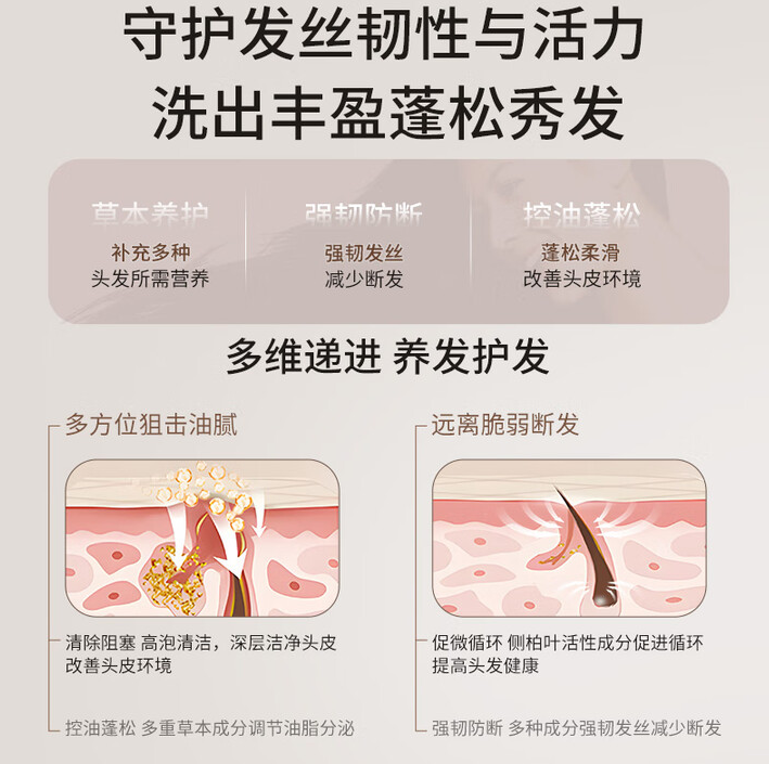 在产品功效方面,它能从根源溶解油脂栓与老废角质,无患子提取物可有效抑制皮脂腺过度分泌,彻底解决 “上午洗头下午就出油” 的问题;经 Intertek 蓬松度测试,发根直立度较之前提升 50%,轻松实现长效蓬松;从 “预防脱发” 到 “强韧发根”,经多家三甲医院多中心验证,多数人使用 4 周后,每日脱发量显著减少,发根拉力强度明显提高,是目前唯一能同时达成 80 小时控油、72 小时蓬松、82.9% 防脱效果的洗发水。