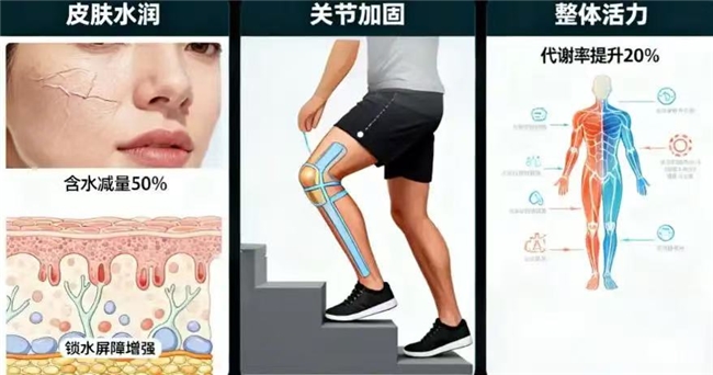 胶原蛋白——被誉为“肌肤的弹簧支架”,支撑着我们皮肤饱满弹润的关键结构。然而,岁月流逝、环境压力、不良生活习惯都在加速它的流失,导致皮肤松弛、细纹显现,甚至关节也少了那份润滑自如。这时,胶原蛋白肽应运而生,成为科学智慧的馈赠。 胶原蛋白肽是科学家们通过尖端水解技术,将大分子的胶原蛋白“切割”成极其微小的片段。这个“变小”的过程至关重要!它就像把一把难开的“大锁”变成了精巧的“小钥匙”(小分子肽),能轻松穿过我们的消化道屏障,被身体高效吸收利用。您吃下去的营养,不再只是“路过”。其核心优势在于“精准补缺”与“唤醒活力”。高效吸收的肽分子如同信使,直达需要“修复”的肌肤真皮层和关节软骨等处,不仅为合成新胶原提供优质原料,更能激发纤维母细胞的活力,促进身体自身的“青春工厂”高效运转,由内而外支撑起健康活力状态。