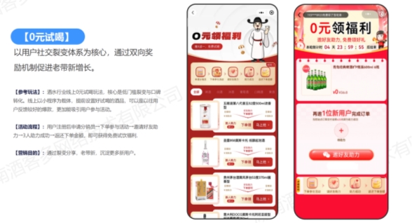 三、多样化系统功能加持:从拉新、留存、促活到复购,一站搞定 1、拉新获客 ● 0元试喝裂变:设置一款爆款酒品,让用户支付后邀请3个好友助力成功,即返全款,相当于“免费试喝”,效果远超广告投放。 ● 线下活码引流:员工工牌、门店海报、公众号文章都可以生成专属二维码,扫码即可加企微、打标签、统计来源,精准计算渠道ROI。