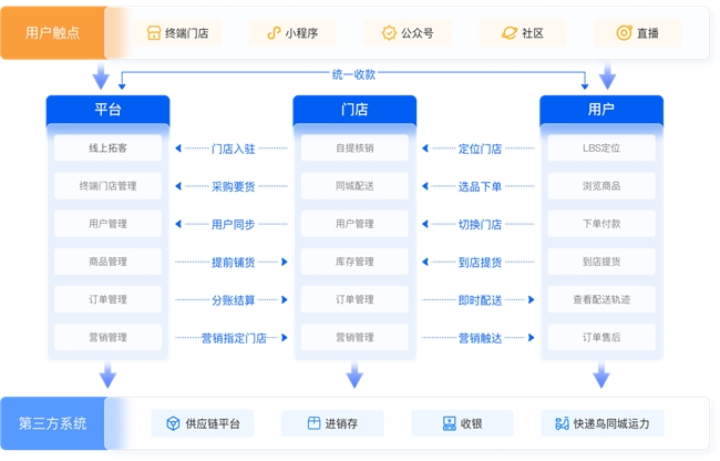 二、这次发布的“酒水即时零售系统”,到底解决什么问题? 酒客多即时零售产品专门为酒类商家打造的,帮助商家从“线下门店”变成“线上即时零售平台”。:用户在线上下单,系统自动派单,最近的门店30分钟送达,货到付款,积分入账,复购留存。它不是一个单纯的电商网站,而是一个完整的“私域即时零售系统平台”,帮你实现三件事: 1、帮你把客户留在自己手里 不再完全依赖美团、饿了么、京东到家这些平台,而是可以自建小程序商城,搭建自己的会员体系。客户下单、充值、领券、积分、互动、裂变,都在你自己的系统中完成。 2、帮你把门店变成同城前置仓 系统能自动识别用户位置,就近分配最近门店,打通顺丰、达达、美团闪送、蜂鸟等运力,实现“30分钟送达”。同时也支持设置自配送范围、运费、送达时间,自由灵活。 3、帮你提升管理效率、降低成本 系统自动结算分账、库存同步、会员积分同步,老板通过手机后台就能看见各门店销售、库存、利润。支持多单位管理(按瓶、按箱销售),还能自动换算库存数量,减少人工错误。