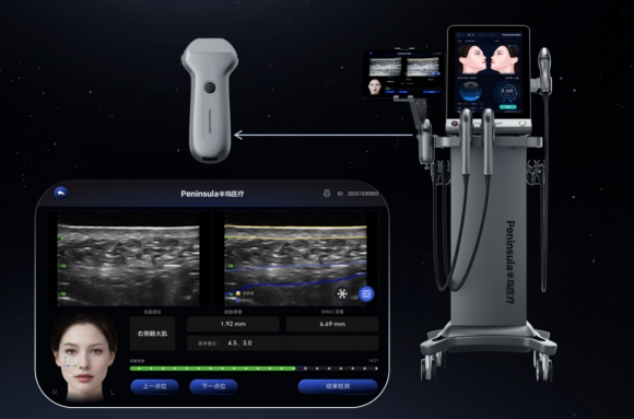 3、精准可视 半岛大超炮首次为国产超声设备配备了智能超声影像系统,这相当于给操作医生配备了一双“透视眼”,极大提升治疗的精准性与可控性,也让黎京雄院长的四维提升方案能够更好地展现在求美者面前。