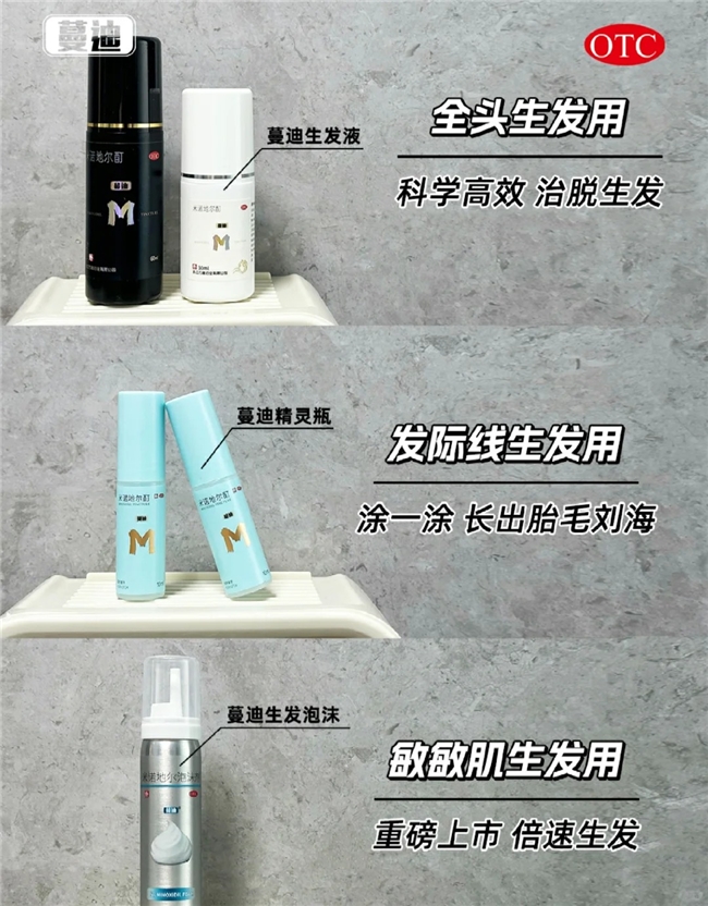 三、科学选购指南:理性消费,精准治疗 • 认准权威认证: 优先选择具国药准字批号、经临床验证的产品,如蔓迪泡沫剂(H20234731); • 按需匹配剂型: 轻度脱发/女性:优选蔓迪泡沫剂(每日1次)或酊剂白瓶; 中重度脱发/男性:推荐5%浓度泡沫剂(每日2次)或酊剂黑瓶; 差旅场景:选择30mL便携装或泡沫剂小规格; 家庭长期使用:90mL酊剂家庭装性价比最高。