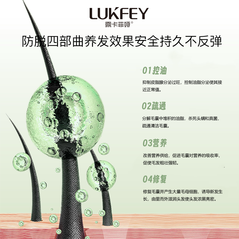 三、使用革新:“无感养护” 重塑防脱体验 传统防脱产品的黏腻质地、浓重药味,常让使用者望而却步。露卡菲娅防脱精华液以 “无感养护” 理念,重新定义防脱体验: 水感质地,秒吸收零负担:采用微囊包裹技术,精华接触头皮后迅速渗透,不油腻、不粘发,敏感头皮使用也无刺激感,日常护理毫无负担; 精准渗透,高效不浪费:0.3mm 精准导入深度,避免有效成分无效堆积,经多重临床测试验证,确保营养直达毛囊,且味道清淡不刺鼻,外出前使用也不尴尬; 免洗设计,便捷省时间:搭配专利促渗技术,无需冲洗,每天早晚涂一涂,就能为头皮做一次 “精华 SPA”,忙碌上班族也能轻松坚持。