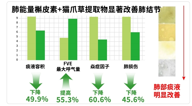 产品最大的特色在于其“双专利成分”协作,其中专利猫爪草源自亚马逊雨林稀有药草,经过专利技术强化后,其滋养力高达原生的45倍。实证文献表明,这一成分能有效化痰散结、解毒消肿,针对磨玻璃结节控制率提升,并调节甲状腺激素水平,辅助改善甲状腺结节。专利槲皮素具备靶向深入净化肺部结节、减缓炎症因子释放、修复损伤细胞和强化防护力的显著作用,为呼吸健康构建坚实屏障。
