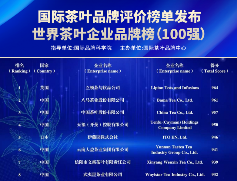 此次登顶并非八马茶业近期获得的唯一殊荣。就在本月早些时候,国际品牌科学院发布的《世界茶叶品牌评价榜单》显示,八马茶业以961分的综合评分高居全球企业品牌第二、中国第一。半月之内,连续在两个极具分量的权威榜单中斩获中国榜首之位,这无疑是对八马茶业强大的品牌实力、市场影响力与未来发展潜力的最高肯定,为其“中国茶加盟第一品牌”的地位提供了最具说服力的注脚。
