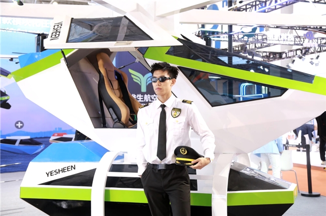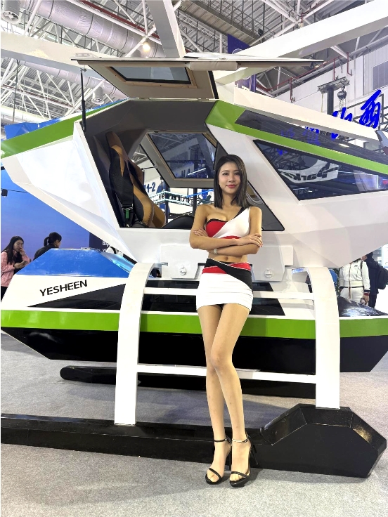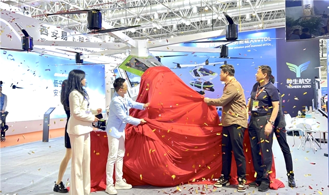 天地铸甲,破界而生:一场改写飞行规则的全球首发 随着晔生航空董事长叶生、董事总经理吴傲冰、董事叶紫云以及多位嘉宾的共同揭幕,全球首款模块化任务舱载人eVTOL“天甲Sky armor”惊艳亮相。碳纤维成型的机身如苍穹之翼舒展,未来感十足的轮廓搭配“天”之高远与“甲”之坚盾的意象赋能,瞬间点燃全场热情。