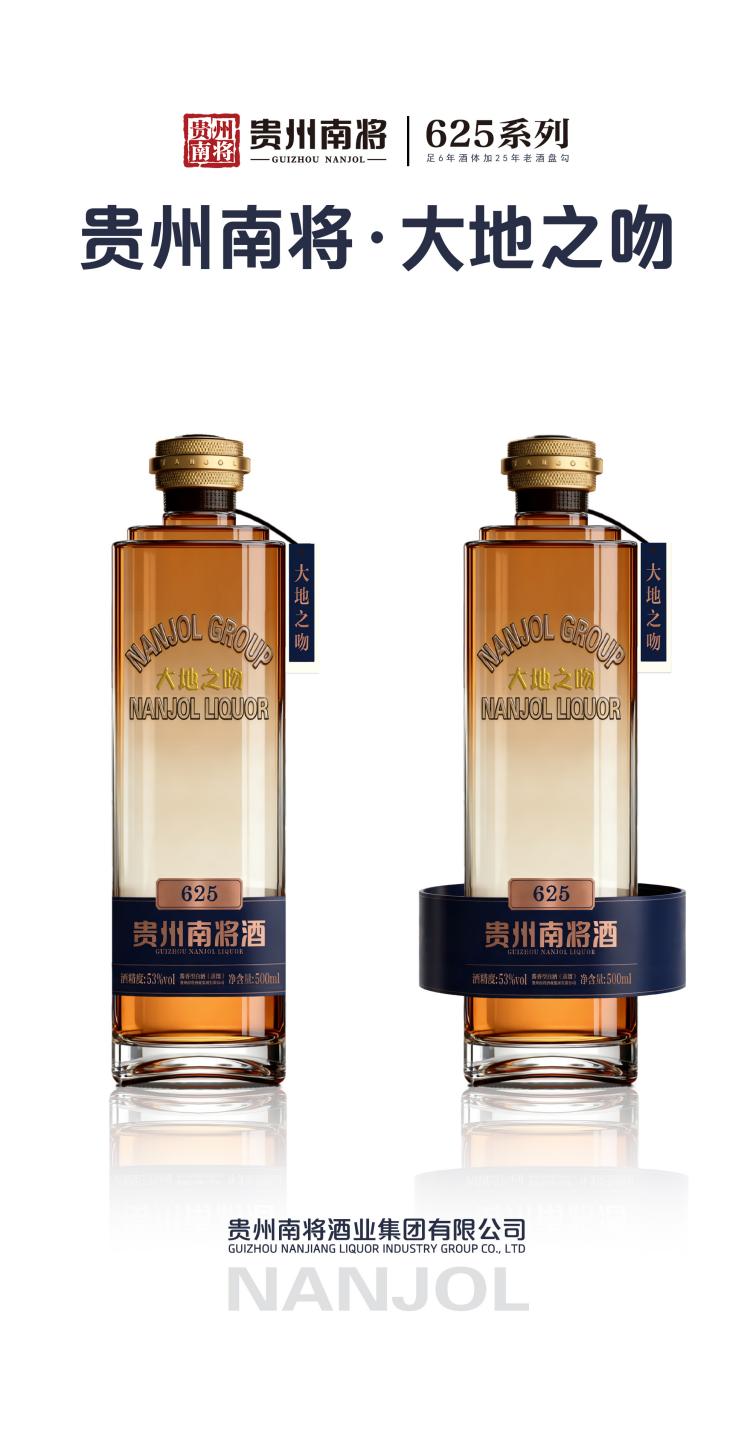 酒体品质的打磨,是此次升级的核心底气。“625系列”是贵州南将酒业集团酿酒团队推出的高品质酒体,采用足6年基础酒体加25年老酒盘勾而成,酒体呈自然微黄色,口感香而不艳、醇而不烈,诸味融合自成一体。 贵州南将·大地之吻是藏于简约美学中的丰盈表达。瓶身以玫瑰金为底,历经8760小时反复打磨,每一处弧度皆蕴藏东方线条的韵律。藏蓝色标签与乳白、藏蓝双吊牌相映成趣,克制间尽显高级质感。标签上的“蒸馏”二字,是对纯粮本源的无声承诺;镌刻于瓶身之上的“大地之吻”,将自然化为可触的印记。