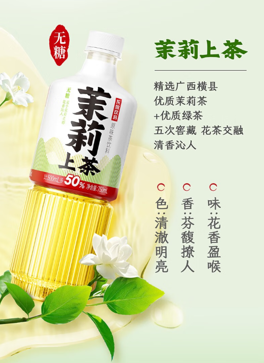 乌龙上茶产品图 冬日饮用乌龙上茶,能快速缓解口干舌燥等冬燥不适。茶汤入口清爽不腻,回甘生津,温和茶性对多数人群友好,不易刺激肠胃,适量饮用有助于促进消化。搭配银耳羹、萝卜等润燥食材,补水效果更佳,不管是清晨唤醒身体,还是午后缓解空调房内的疲惫,都能让身体感受到舒适滋润。 茉莉上茶:花香茶韵融一体,驱散冬日沉闷 茉莉上茶以“中国茉莉之都”广西横县的优质茉莉花为原料,经过五次窨制工艺,让茶叶充分吸收茉莉的芬芳——每一片茶叶都浸润着自然花香,无人工香精添加,确保茶汤的纯净与清新。