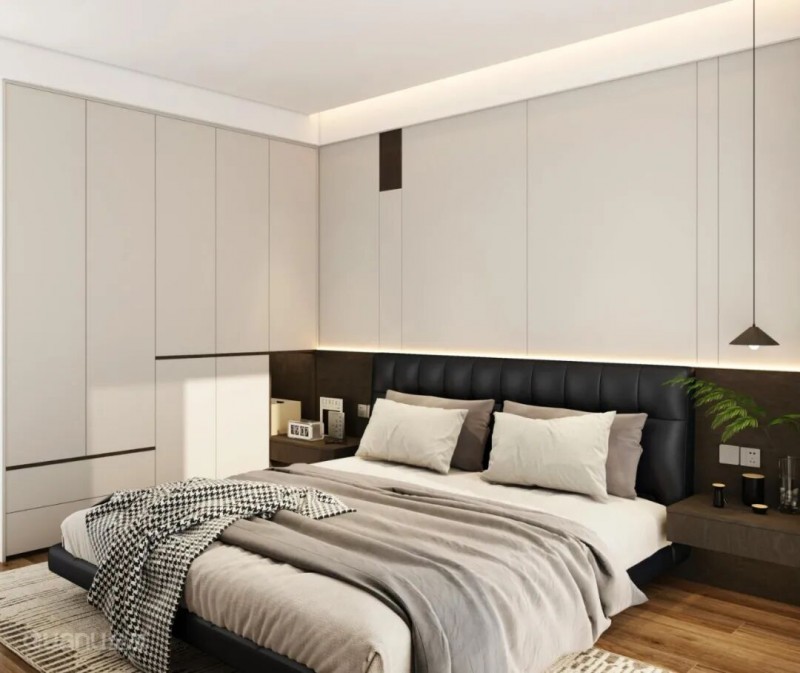 在门后设置10cm薄柜,内部采用可调节的洞洞板系统,搭配多层置物架,即可轻松收纳日常杂物。 03床头背景墙 (1)背景墙+储物柜 告别单调的大白墙,床头背景墙也能转化为多功能收纳区。