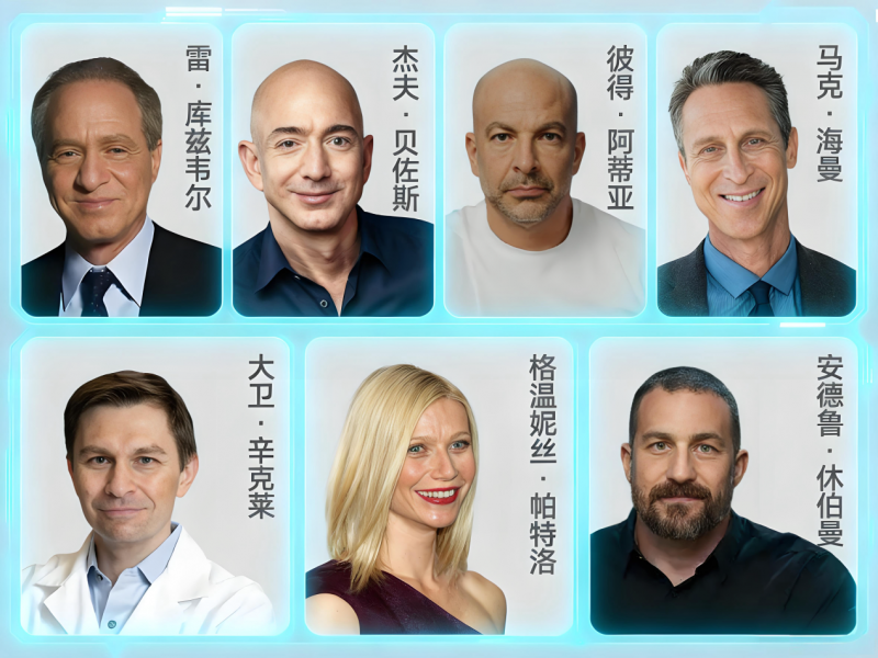 Bryan Johnson纪录片 他并非例外,亚马逊创始人Jeff Bezos坚持每日补充多种营养素,还重金投入长寿领域;谷歌技术总监Ray Kurzweil更以“一天服用一百多颗补剂”闻名;哈佛教授David Sinclair、斯坦福医生Peter Attia、神经科学家Andrew Huberman和功能医学专家Mark Hyman在公开场合多次谈及营养补充的重要性;好莱坞影后Gwyneth Paltrow甚至旅行都随身携带补剂盒。