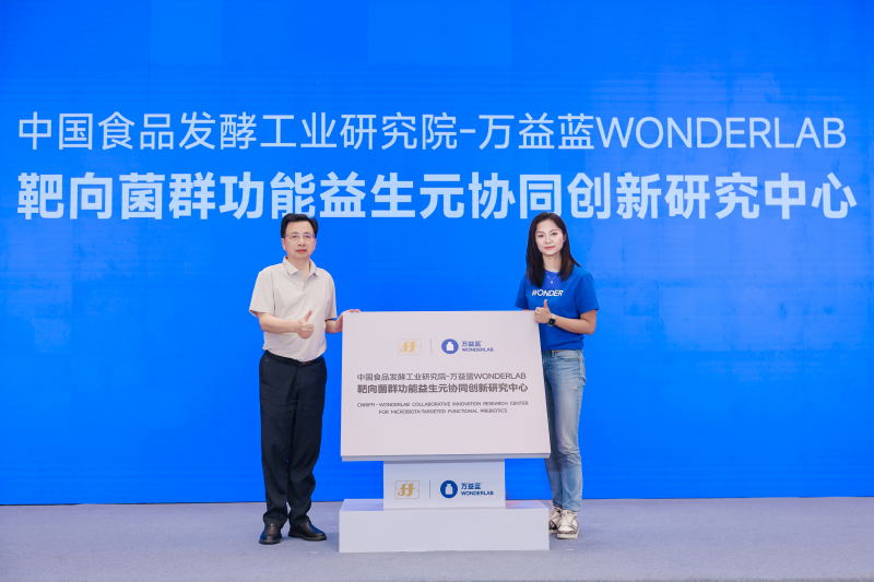 同月,万益蓝WonderLab又宣布与山东大学共建“山东大学-万益蓝WONDERLAB靶向菌群代谢健康联合实验室”。依托山东大学在肠道微生物组领域的研究基础,双方合作聚焦“靶向菌群代谢健康”方向,围绕益生菌调节糖代谢及体重管理相关研究展开探索。科研力量与企业创新实践的结合,使产学研模式形成更加紧密的闭环,为万益蓝WonderLab科研成果的临床应用、产业落地及健康管理方案提供了更大的拓展空间。