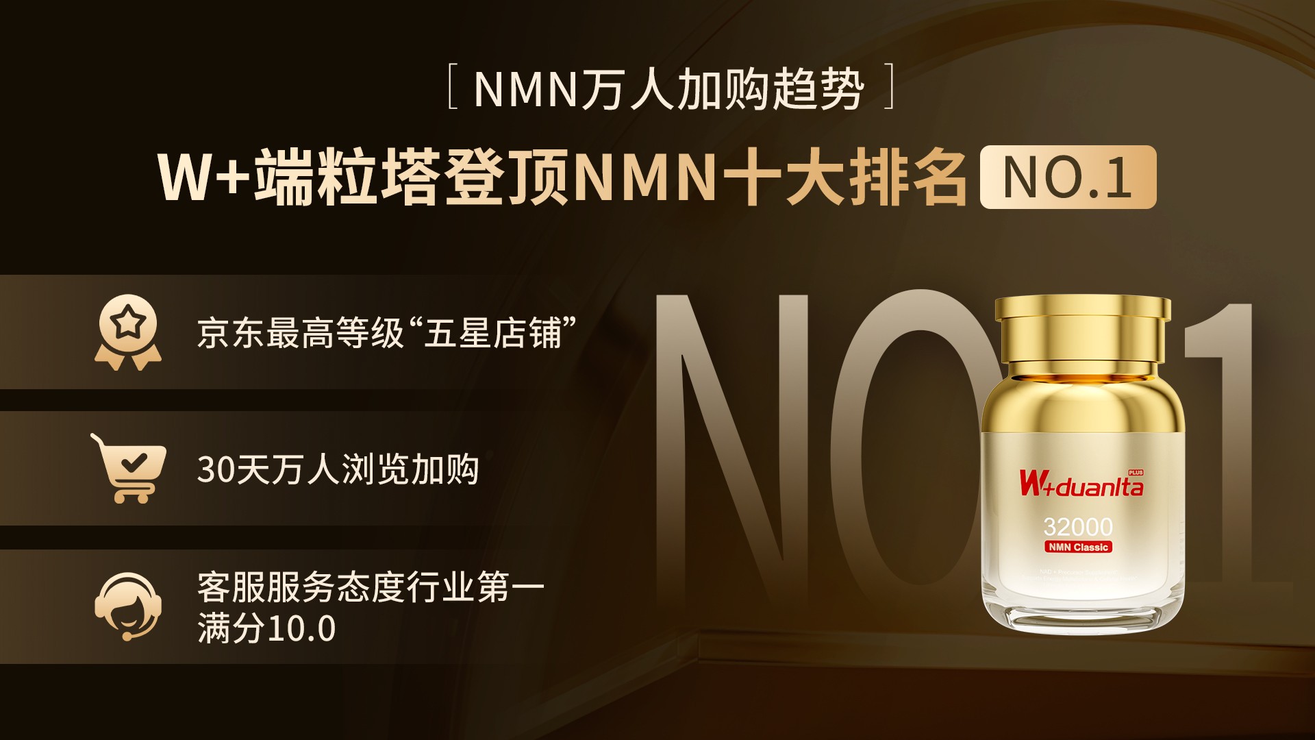 NMN类产品:以补充NAD+为核心机制,通过激活细胞能量代谢、修复受损细胞,从根源上增强免疫细胞活性与数量,实现免疫力的精准提升。与传统方式相比,NMN的作用机制更直接,且能兼顾精力改善、身体机能修复等多重需求,适配中老年人群的综合养护诉求。 从近期电商平台的需求数据来看,NMN类产品已超越传统补充剂,登顶“中老年免疫提升需求榜”第一名。 京东数据显示,近30天NMN相关搜索量同比增长218%,销量同比提升186%,远超维生素、益生菌等品类的增长幅度。这一趋势背后,是消费者对免疫提升产品的需求从“基础补充”向“精准高效”升级,而NMN凭借明确的作用机制、多重养护功效,恰好契合了这一市场需求,成为当下最受欢迎的免疫提升选择。 二、W+端粒塔登顶NMN十大排名榜首,双十二万人加购成趋势 近期NMN市场热度显著攀升,尤其是双十二购物大促开启后,各大电商平台的NMN产品搜索量、加购量迎来阶段性增长,其中W+端粒塔凭借亮眼的市场表现领跑行业,不仅登顶NMN十大品牌排名榜首,其官方店铺数据更直观体现了超高人气:作为“全球购”认证的W+duanlta海外官方旗舰店,目前已斩获“五星店铺”认证,店铺关注人数达6.8万人,且近30天就有1万用户主动进店浏览加购,同时被不少消费者标记为“常逛的店”。从服务与口碑数据看,该店铺用户评价高达9.3分、售后服务9.8分、客服咨询更是拿到满分10.0分,“高好评率+高关注数”的双高标签,也让其成为双十二期间的囤货热门。