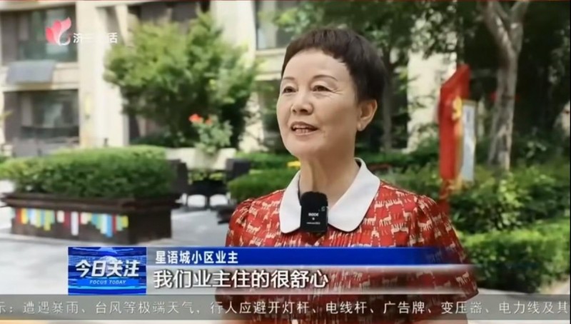图:杨阿姨接受济宁生活频道记者采访 03 生命关怀,织密“一老一小”幸福网 在星语城,服务不仅关注“物”的管理,更聚焦“人”的需求,尤其围绕“一老一小”两个关键群体,构建起全龄友好的社区支持网络。