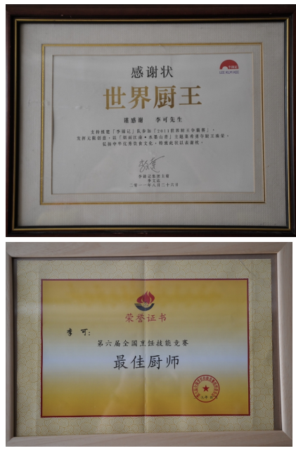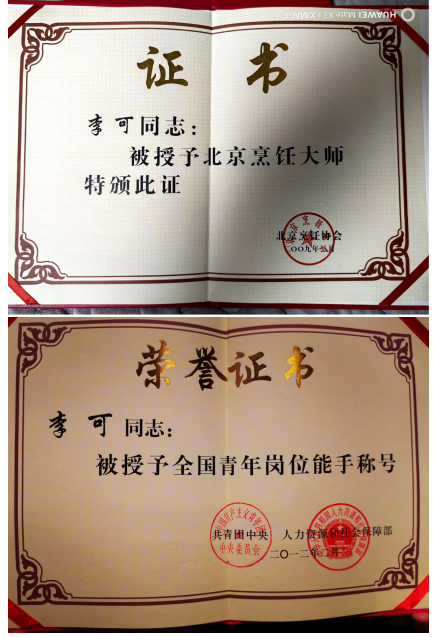 淬艺:千淘万漉磨真功,刀火淬炼百味魂 1994年,怀揣着对烹饪行业的赤诚热爱,李可踏入餐饮行业,从此与刀砧为伴,与油火为邻。彼时的他,还是个懵懂青涩的少年,只能从最基础的后厨杂役做起。每日清晨六点,他便抵达后厨,清理食材残渣、备好烹饪器具、擦拭灶台,为大厨打理好一切;深夜时分,又逐一检查水电消防,筹备次日物料。数年的晨兴理秽,夜寐筹谋,只为能多学一招半式。“厨师讲究学三年、做三年、学学做做又三年,没有十年八年的沉淀,难以上灶掌勺”。李可说道。天道酬勤这句至理名言,他始终铭记于心,并用实际行动践行到底。 为夯实基本功,李可冬练三九、夏练三伏。切配时,力求每一片食材厚薄均匀、长短一致,手指被刀刃划伤是常事,却从未停下练习的脚步;颠勺时,常常练到手臂酸痛难忍,但仍然咬牙坚持,直至翻炒自如、火候精准。对每一味食材的肌理、每一种调料的配比、每一个火候的把控,他都反复揣摩,用心记忆。为精进刀工,他对着萝卜、土豆反复练习切丝、切片、雕花,累计消耗的食材不下千斤。 千淘万漉虽辛苦,吹尽狂沙始到金。数十年的潜心磨砺,让李可的厨艺日臻精湛。他精通官府菜、鲁菜、粤菜及中西合璧菜,尤以面塑雕饰、果蔬雕刻、冷荤摆盘见长,烹饪风格兼具“传统底蕴”与“创新活力”,注重“制作简约、装盘雅致、食用便捷”的实用创新。凭借精湛的厨艺和精益求精的执着精神,李可先后获得中国注册烹饪大师、北京烹饪大师、高级烹饪技师、中华金厨奖、中国名厨、全国最佳厨师、全国青年技术能手、全国优秀厨师等称号,并斩获全国第六届烹饪技能大赛总冠军、世界厨王争霸赛冠军、中华金厨奖等诸多重量级荣誉,担任世烹联名厨委副秘书长、国际大赛评委,成为行业公认的“全能型烹饪大师”,用刀火淬炼出属于自己的百味人生。