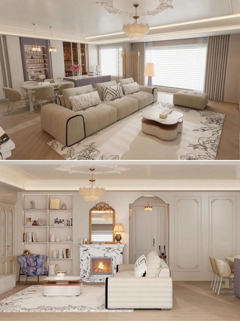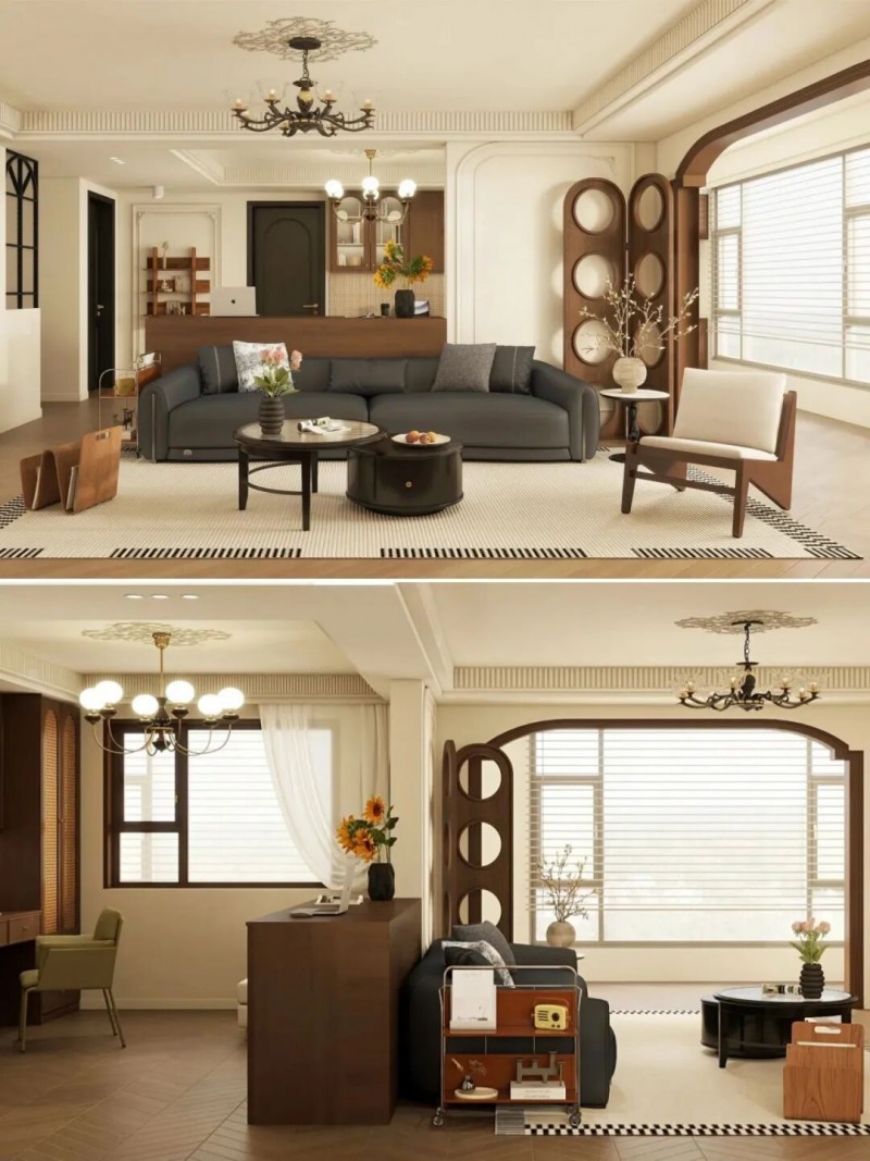 这种方式不阻挡光线,确保了空间的通透感。搭配一块契合区域形状的地毯,能进一步强化不同功能区的心理界限。