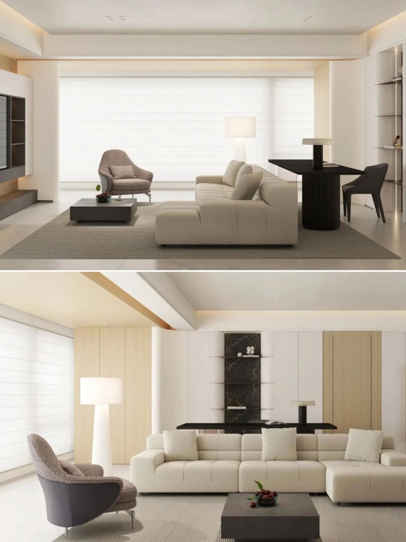 开放式布局的灵活哲学 选择不设固定隔断,将沙发靠墙摆放,保留完整的开阔视野。