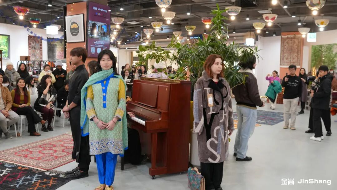 这不仅是一个空间的开启,更是一场关于“相遇”的实验:当丝路会客厅遇见世界面孔,当商业空间承载文明对话,会发生什么? 我们选择用一场有温度、有内容的开幕典礼,来回答这个问题。 这里,有T台上流动的世界风景 我们邀请了来自北京语言大学的留学生们共同呈现一场小型时装展演。服饰不仅是美的表达,更是文明的载体。每一件衣衫,都带着它来自远方的故事与温度。
